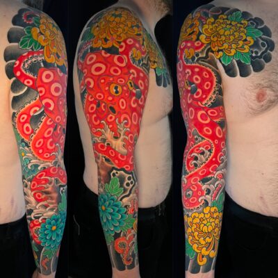 In the beginning I tried to work in every style, but I always loved the ornamental work. There was no lack of tribals in the 90´s. Over time my interest for the classic japanese tattoo got bigger, there was always a fascination for it but I definitely didn`t have the knowledge or the skills for this kind of work. Meanwhile, after more than 15 years of studying and various trips to japan, I mainly focus on this kind of tattoo.